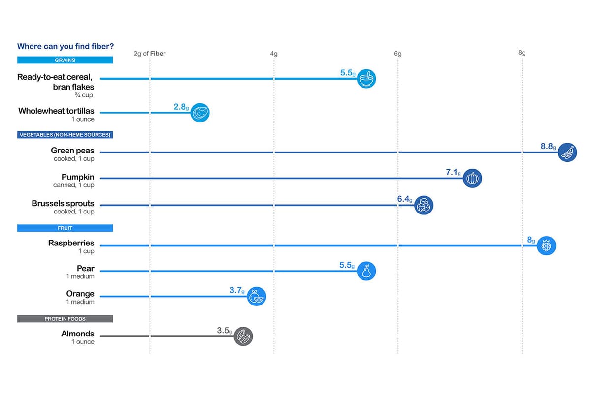 Download the infographic on some common sources of fiber and recommended intake for a convenient quick reference.